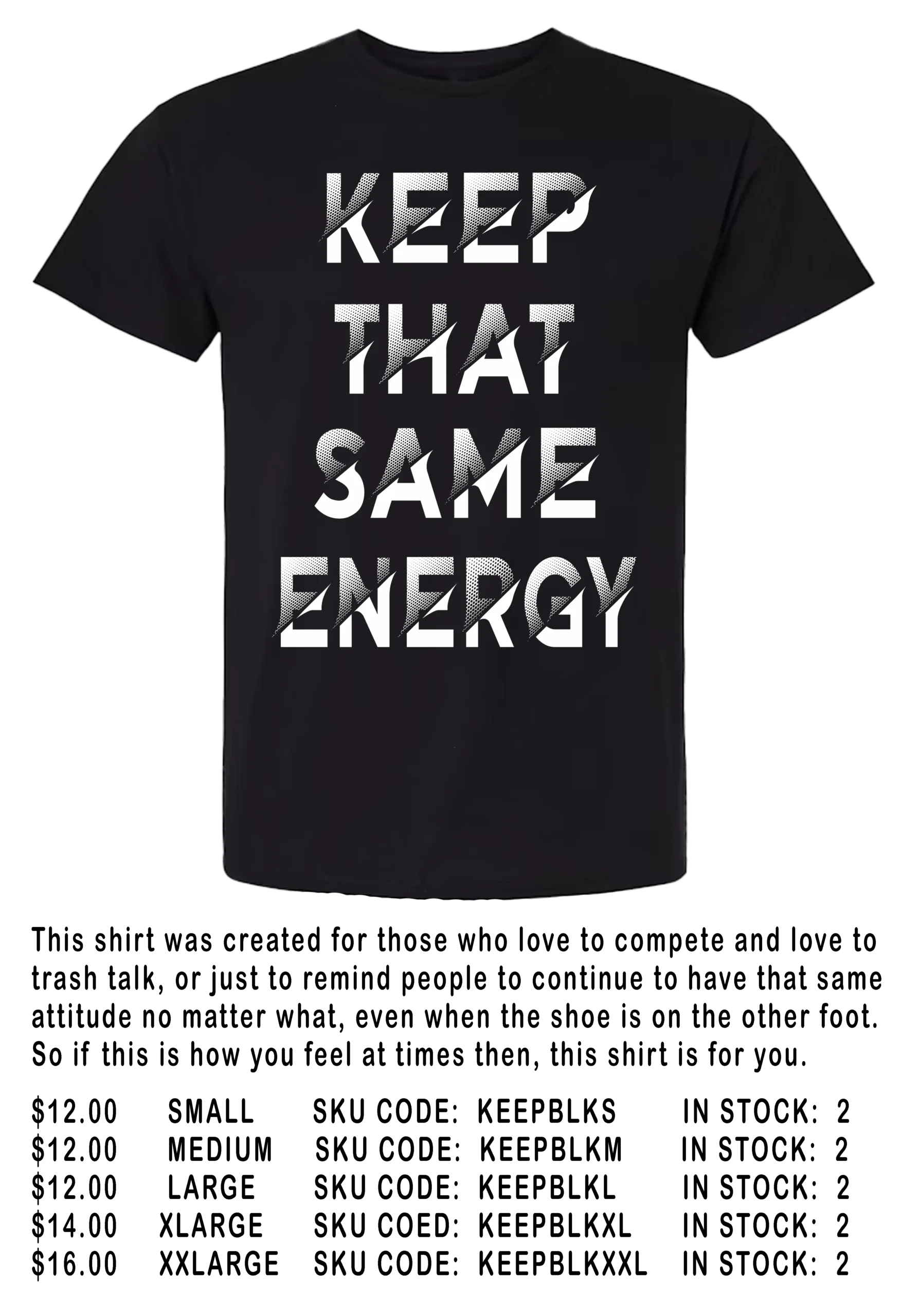 KEEP THAT SAME ENERGY MEN BLACK SHIRT