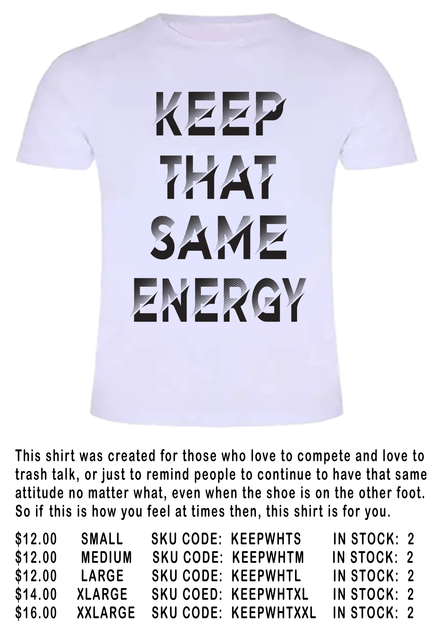 KEEP THAT SAME ENERGY MEN WHITE SHIRT